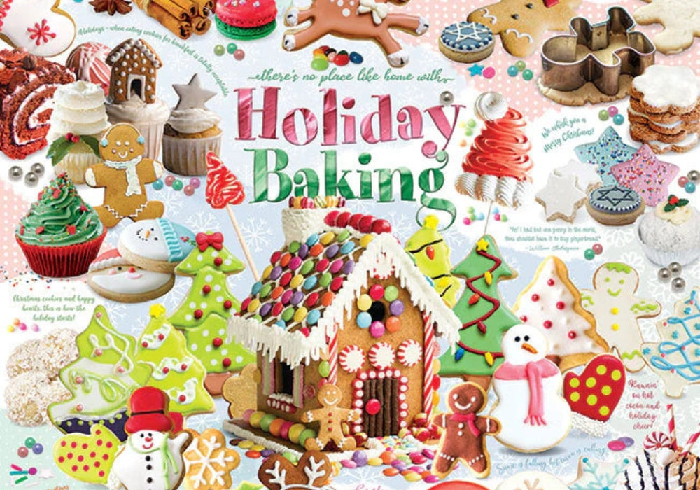 Holiday Baking 1000 piece puzzle is a part of our Sweet Time Series from our Cobble Hill Creation design team. It's full of whip cream, sugary candy, Christmas cookies, and a fully decorated gingerbread house with snow-dripped icing. A delicous 1000 piece puzzle that will satisfy your sweet tooth! Cobble Hill was founded in 2005 with a desire to bring loving, whimsical, high-quality images to puzzle enthusiasts around the world! Our puzzles have been described as nostalgic, lively, endearing, sweet, durable, and fine quality.