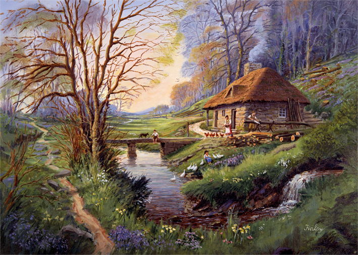 Cottage in the Woods is the title of this stunning 1,000 piece Falcon de luxe jigsaw puzzle. The puzzle image captures a picturesque scene of a lone cottage in the woods covered in greenery on a beautiful autumn day. The cottage is very pleasing on the eye, as it sits nestled in the countryside.