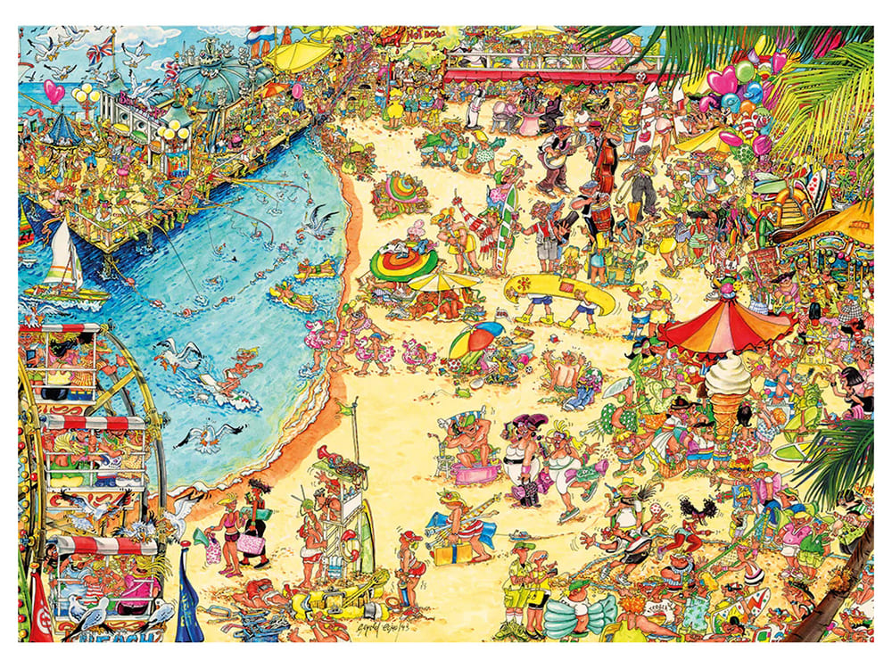 Dive into a seaside adventure in this eye-popping 1000 piece Jokesaw puzzle by Gerold Como. Unravel the chaos of a seaside resort, from a ferris wheel's dizzying spins to silly seagull antics. As with all Gibsons jigsaws, we use 100% recycled puzzle board, FSC paper and work with the best artists from all around the world. The beautifully illustrated pieces use the thickest puzzle board on the market. Same great puzzles, kinder to the environment. This jigsaw puzzle is planet-friendly. Not only does the box have a fresh new look, but weve used biodegradable clear labels to secure the lid instead of shrink wrap to reduce our plastic waste.