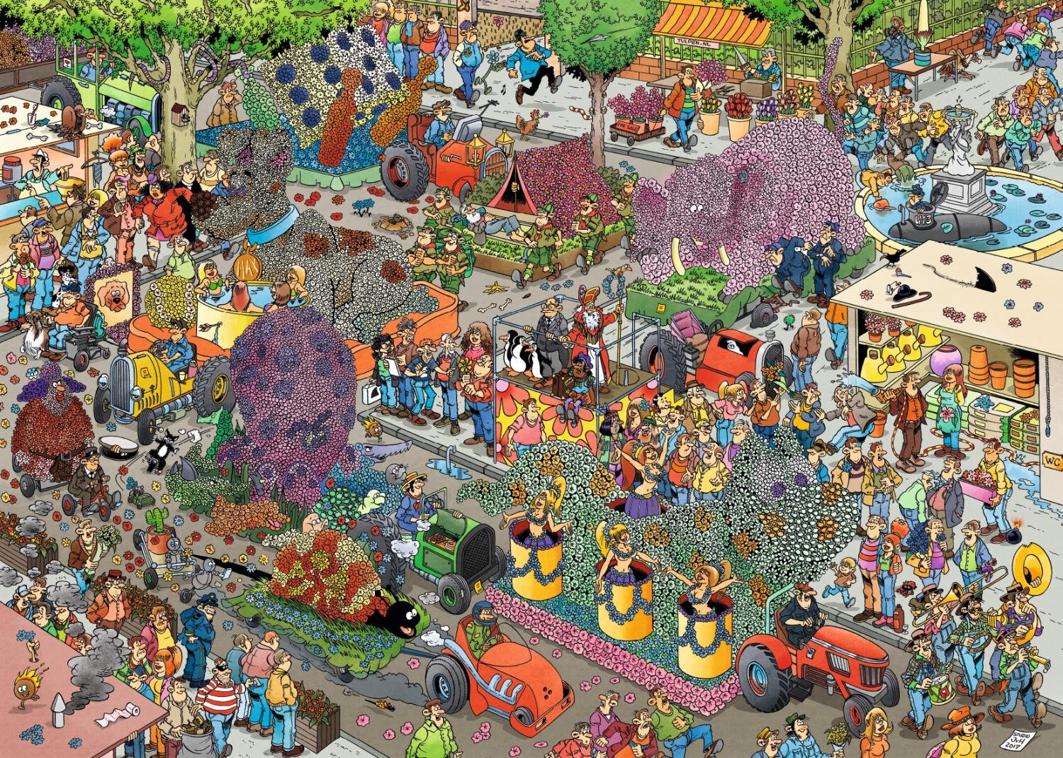 Join the chaotic and comedic adventures of the Jan van Haasteren family with this 1000 piece jigsaw puzzle! Made from recycled cardboard in Europe, each piece is expertly cut with the thinnest knife for a seamless finish. Get ready for hours of fun with this quirky and playful puzzle.