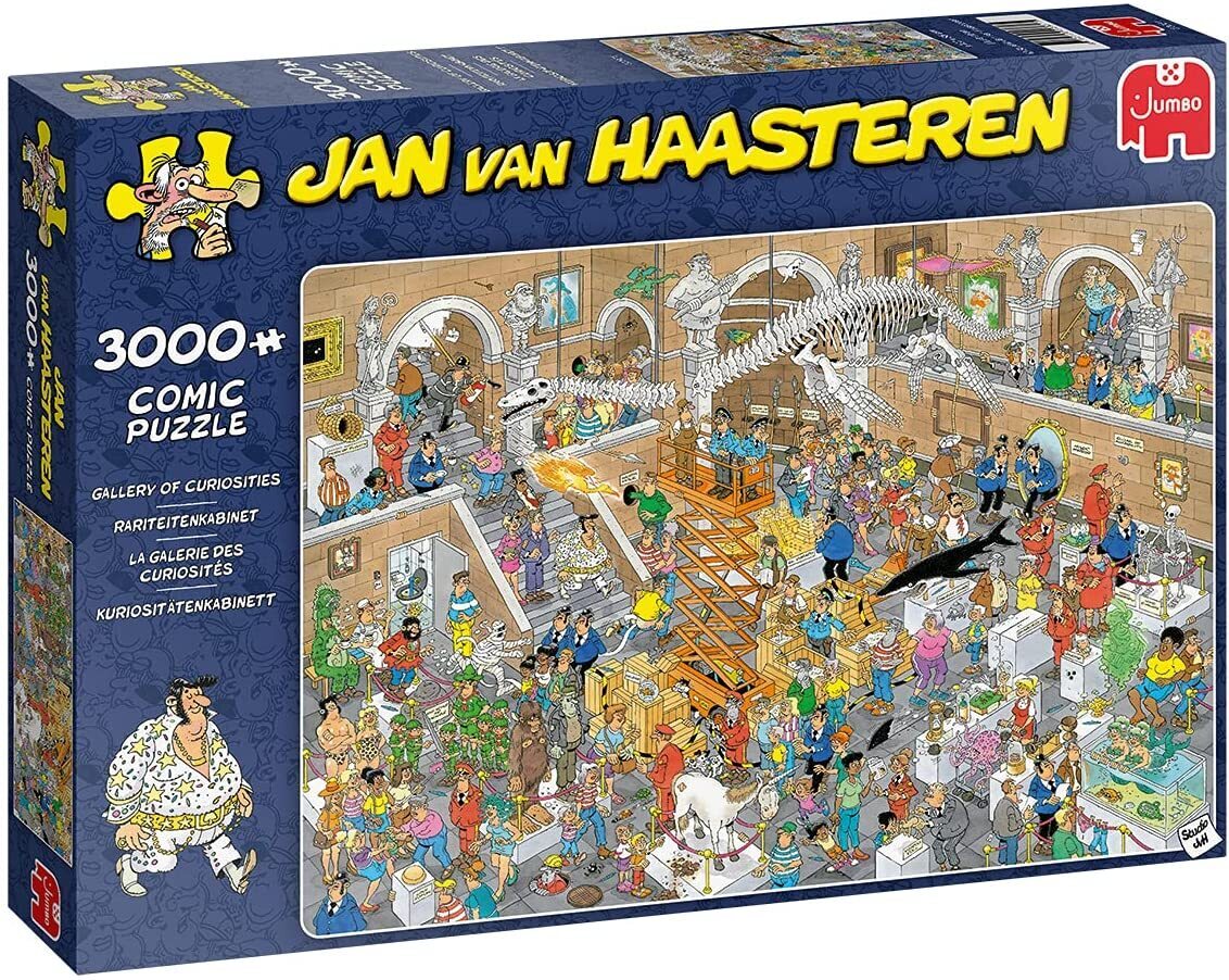 Gallery of Curiosities is the title of this irreverent Jan van Haasteren 3,000-piece jigsaw puzzle. As with all his humorous illustrations, youre sure to find this an extremely enjoyable puzzle to solve with plenty of laughs to be had along the way. The completed scene captures a trip to see the wonders of the Gallery of Curiosities, but it appears some of the exhibits have a mind of their own and are determined to cause chaos! Jans humour can be found in even the smallest details of the puzzle image, so make sure you keep an eye out for some amusing trademarks.