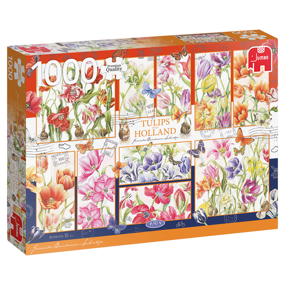 Puzzle enthusiasts rejoice! The Jumbo - Tulips of Holland 1000 Piece Jigsaw Puzzle is here, featuring a seamless finish and unique fit & shape for maximum enjoyment. Crafted with passion and using only the finest recycled materials, this puzzle upholds Jumbo's 160-year standard of quality and innovation. Environmentally friendly and available in a variety of images and piece-counts. Enjoy the challenge!