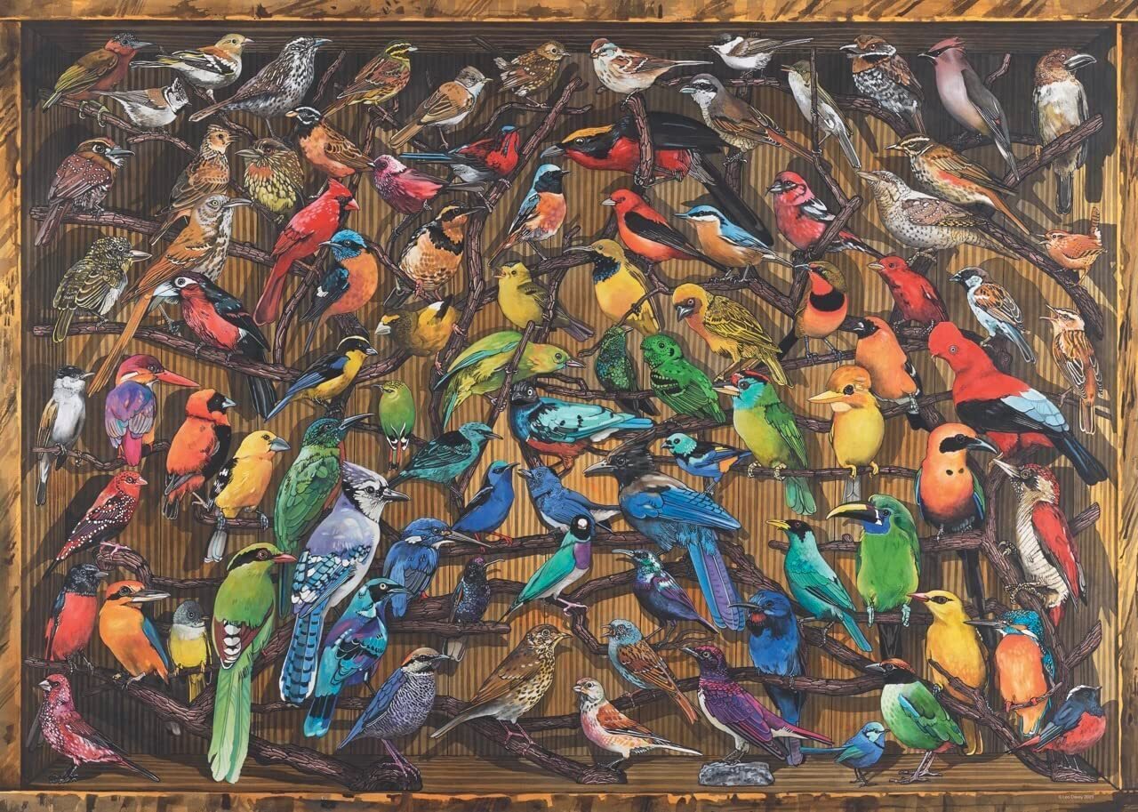 Inspired by the song "Somewhere over the Rainbow", 89 birds from across the globe rest for a moment to create an incredible rainbow of colour, before fluttering off on their travels. Study the colours of each beautiful bird; from the rich red of the Northern Cardinal to the brilliant blue Splendid Fairywren and the glowing Emerald Toucanet, their shades and tints will tease and challenge you. The detailed textures and tones of the LBBs (little brown birds) are equally striking, with their different patterns and plumage giving valuable clues whilst puzzling. Inspired by the artist's daughter and created during lockdown, this rich rainbow represents both hope and the beauty of the natural world. Unwind, relax and create some mindful moments as you assemble this stunning hand-illustrated design.